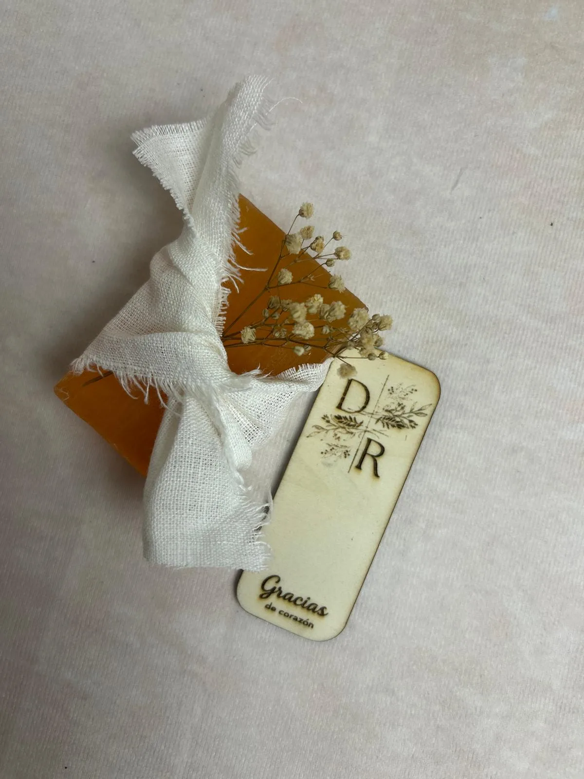 Jabón artesanal elaborado a mano con ingredientes naturales y aroma delicado. Un detalle elegante y sostenible para regalar en bodas y eventos. Los mejores detalles para invitados de bodas en Lugo artesanales.