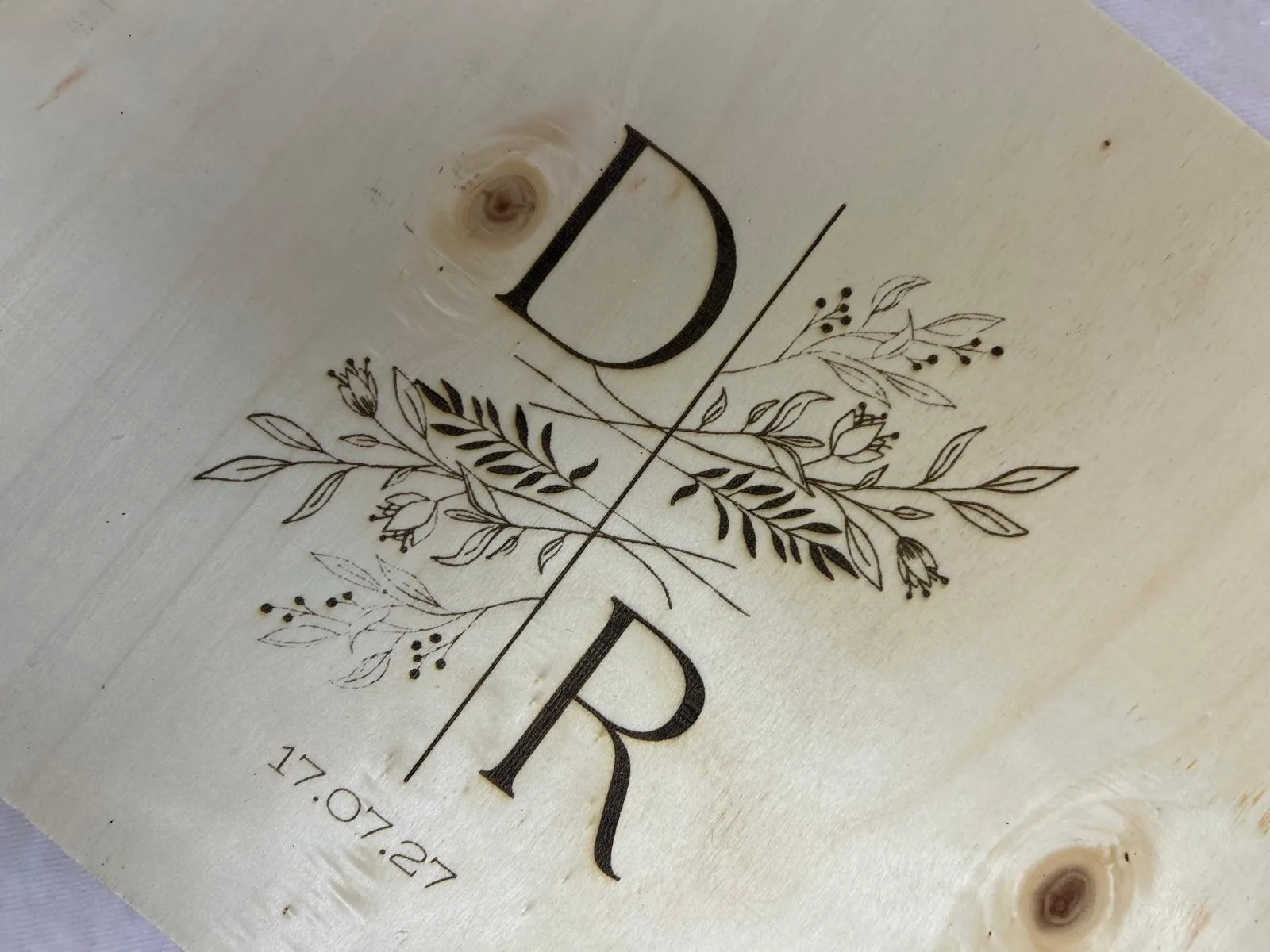 De estilo rústico, romántico y minimalista, ideal para una boda campestre o boho. Personalizado con vuestras iniciales y la fecha de la boda, o tienes la opción de mandarnos tu logo y te lo grabamos de igual modo.