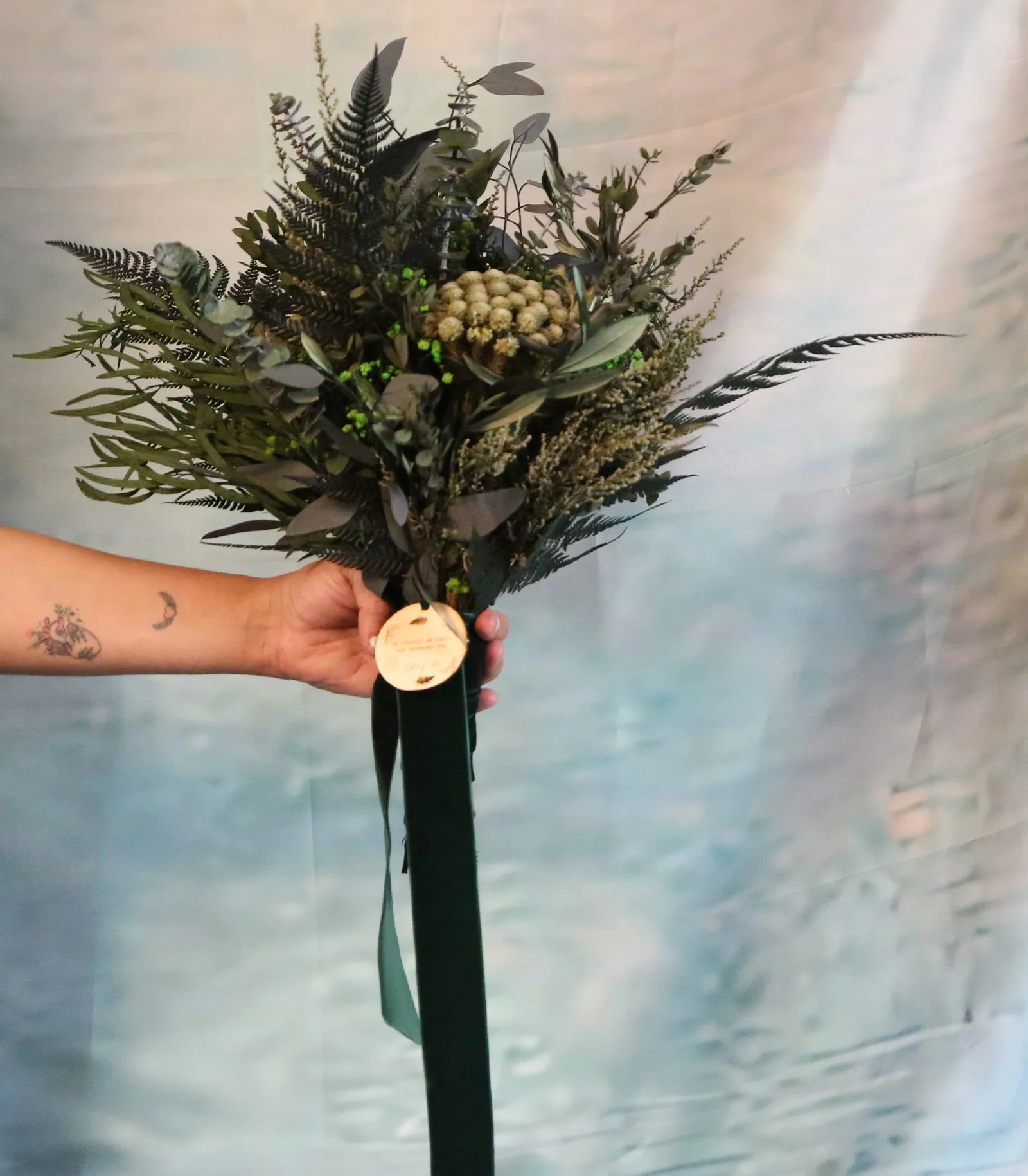 Flores: distintas variedades de eucalipto, paniculata verde, stoebe, olivo, helecho, lanuginosa…