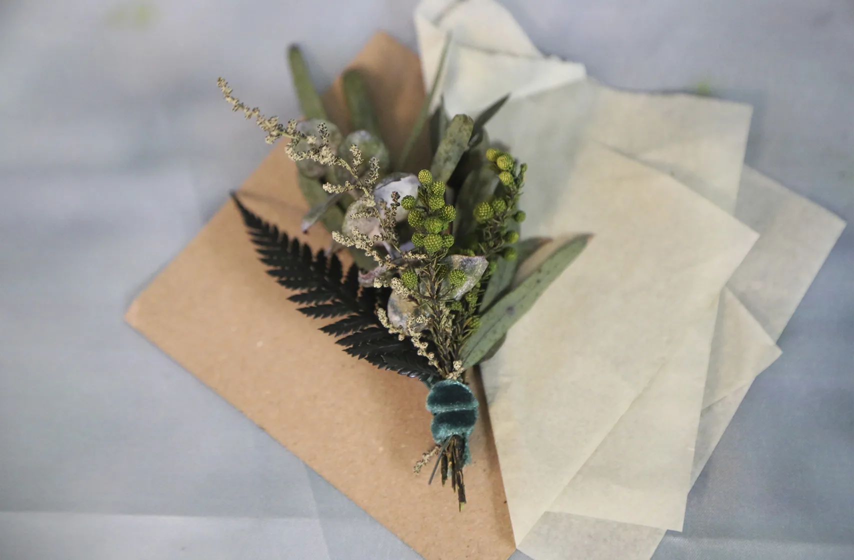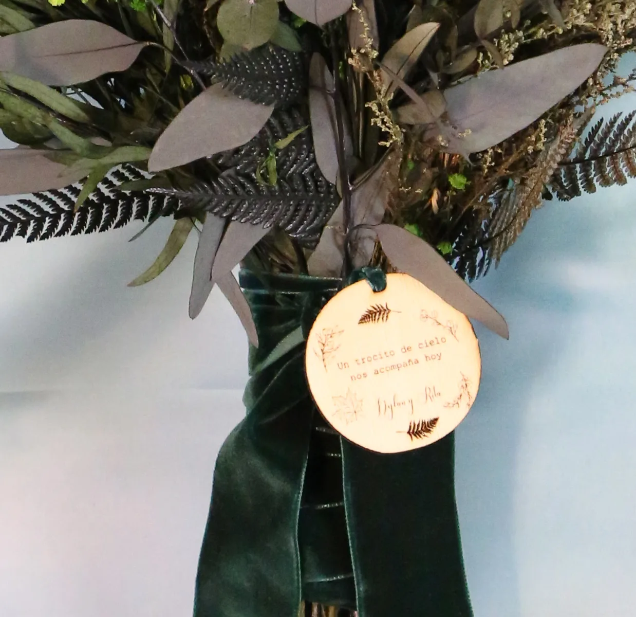 Flores: distintas variedades de eucalipto, paniculata verde, stoebe, olivo, helecho, lanuginosa…