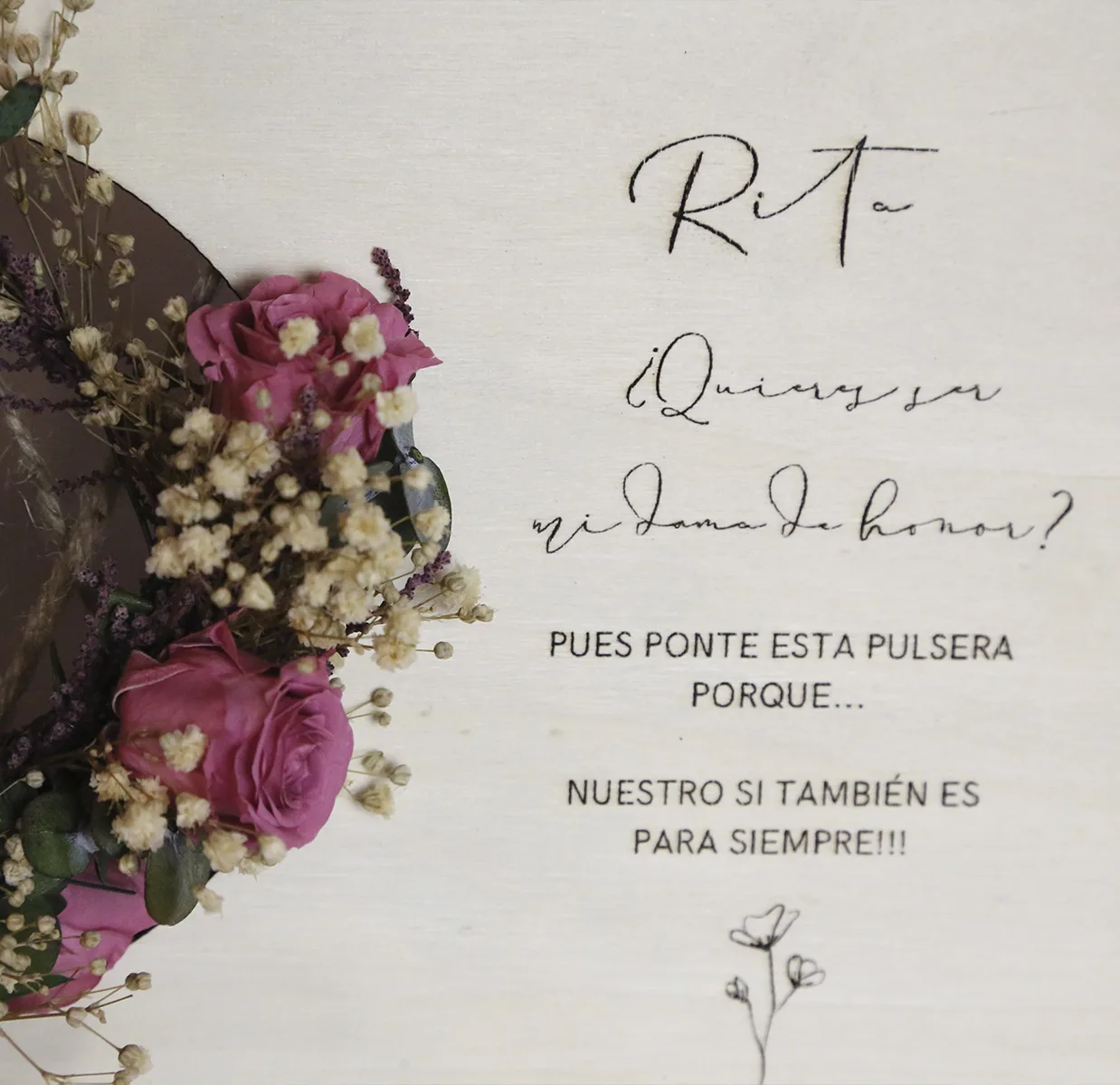 Un detalle lleno de significado para la dama de honor: un cuadro especial que guarda un elegante brazalete, convirtiéndose en un recuerdo único de un día inolvidable.